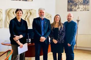 La Embajadora de la República Argentina en Hungría, Lorena Capra, mantuvo una reunión con el Rector de la Universidad de Bellas Artes de Hungría (MKE), István Erőss, en la que se repasó el estado del acuerdo suscrito en noviembre de 2023 entre dicha institución y la Universidad Nacional de Tres de Febrero (UNTREF).